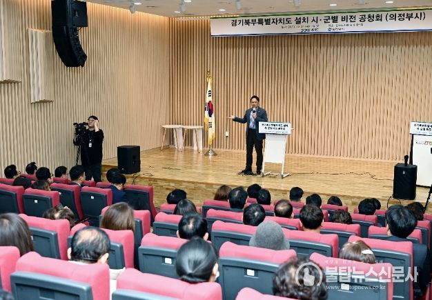 경기도는 31일 의정부시 정보도서관에서 김동근 의정부시장, 김현주 의정부시의회 부의장, 김민철 국회의원, 오후석 경기도 행정2부지사를 비롯한 도의원, 시의원, 지역주민 등 100여 명이 함께한 가운데 ‘경기북부특별자치도 설치 추진 시군별 비전 공청회’를 열었다.