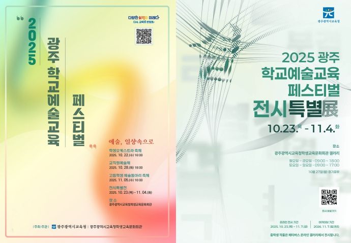 이 밖에 오는 23일부터 11월 4일까지는 학생교육문화회관 갤러리와 메타버스 온라인에서 특별전시가 운영된다. 전시에는 광주지역 교직원과 중·고등학생 68명이 참여해 작품을 선보인다.