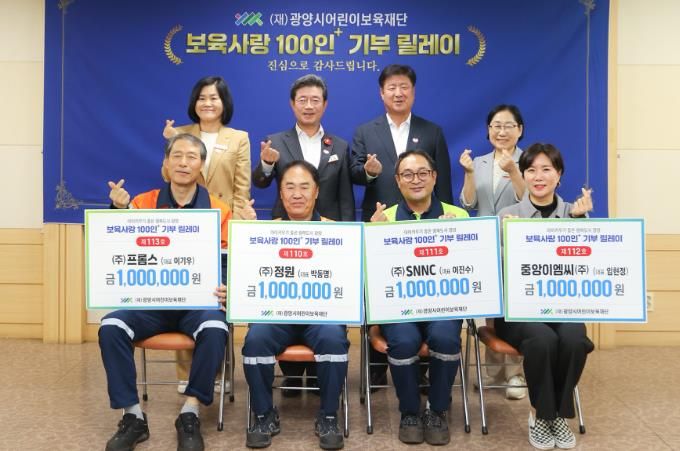 박동명 ㈜정원 대표는 “뜻깊은 자리에 함께해 기쁘다. 우리 회사는 지역사회와 함께 성장해 온 기업으로, 작은 보탬이 되고자 기탁에 참여했다. 오늘의 나눔이 광양의 미래를 책임질 아이들의 밝은 내일로 이어지길 바란다”고 말했다.
