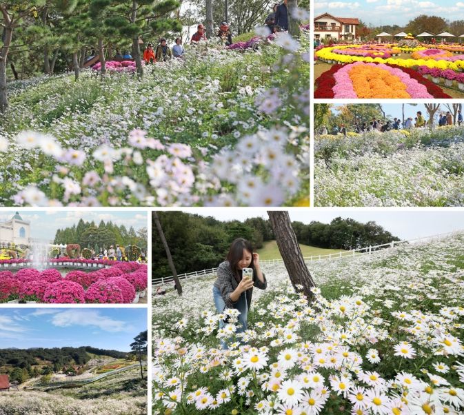 특히, 바람의 언덕 일대에서는 형형색색의 국화꽃 사이로 새하얀 구절초가 어우러져, 사시사철 푸른 소나무와 함께 한 폭의 수채화를 연상케 한다.