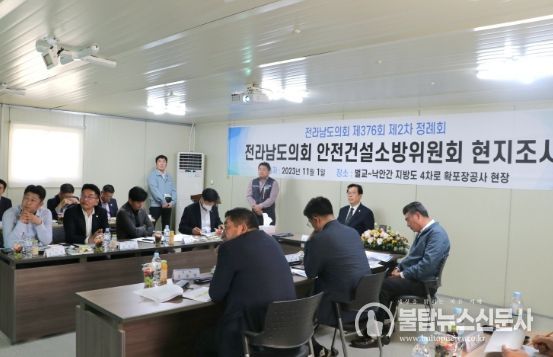 불탑뉴스 기자 | 전라남도의회 안전건설소방위원회는 제376회 제2차 정례회 기간 중 11월 1일, ‘벌교~낙안’ 지방도 공사 현장을 방문해 2023년 행정사무감사 현지조사를 실시했다