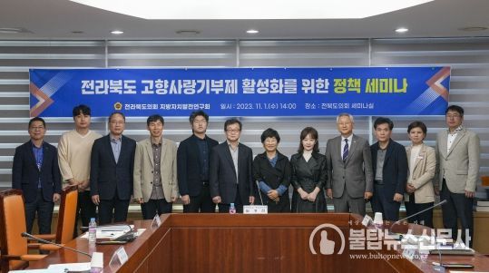 불탑뉴스 기자 | 전라북도의회 지방자치발전연구회 오현숙 대표의원(정의당, 비례)은 1일 전라북도의회 세미나실에서 ‘전라북도 고향사랑기부제 활성화를 위한 정책 세미나’를 개최했다.