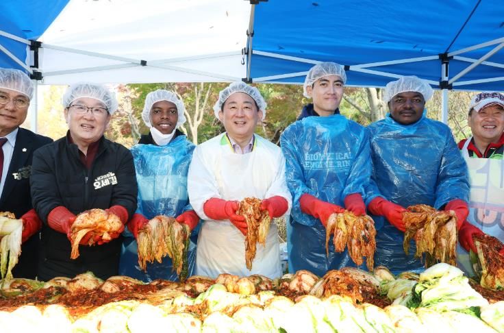㈜한국탑뉴스 차복원 기자 | 대전 서구는 6일 둔산동 샘머리공원에서 열린 서구 자원봉사센터 주최‘함께하는 기쁨, 사랑 가득 김장 나눔’ 행사에 배재대학교 유학생인 정부 초청 외국인 장학생 30명이 참여했다고 전했다.