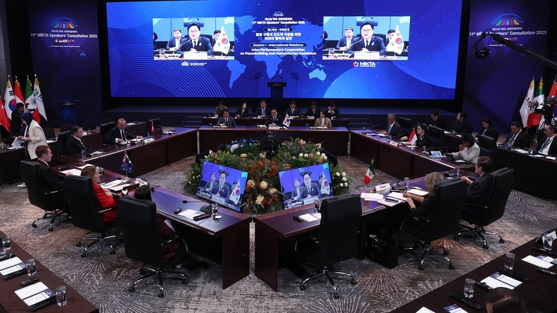 ▲대한민국국회 주최로 '제11차 믹타(MIKTA) 국회의장회의'가 진행되고 있다5개국 의회 회의모습(사진출처=한국탑뉴스)