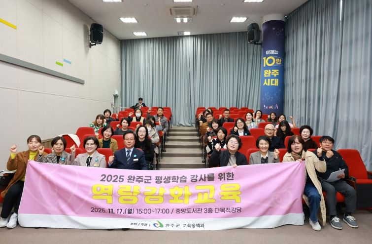 ㈜한국탑뉴스 차복원 기자 | 완주군이 17일 중앙도서관 다목적강당에서 평생교육 강사 80여 명을 대상으로 ‘평생교육 강사 역량강화 교육’을 실시했다.