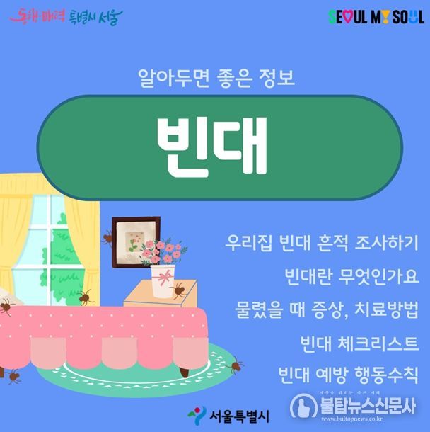빈대는 감염병을 매개하는 해충은 아니지만 흡혈로 불편과 알레르기, 심리적 피로감을 주는 해충이다. 시는 시민 피해를 방지하기 위해 빈대 발견 시 온라인 신고할 수 있는 신고센터를 운영하고 호텔·숙박시설·목욕장·찜질방 점검과 함께 유관 협회와 자율 방역을 추진한다. 또 서울시 누리집을 통해 연결되는 ‘빈대 정보 웹페이지’를 운영, 빈대에 대한 정보와 발견 시 대응요령을 제공한다.