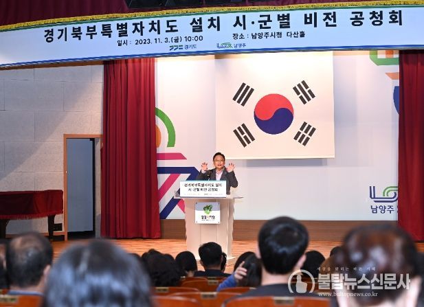 경기도는 3일 남양주시청 다산홀에서 이석범 남양주 부시장, 이상기 시의회 부의장, 김한정 국회의원, 오후석 경기도 행정2부지사를 비롯한 도의원, 시의원, 지역주민 등 100여 명이 함께한 가운데 ‘경기북부특별자치도 설치 추진 시군별 비전 공청회’를 진행했다.