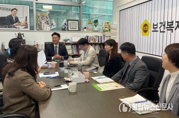 최종현 경기도의회 보건복지위원장(더불어민주당, 수원7)은 3일 경기도의회 보건복지위원장실에서 오승진 수원중앙복지재단 상임이사, 한해영 수원시장애인종합복지관장, 권미정 꿈자리보금자리 장애인주간보호시설 원장, 김명진 수원시광교주간보호시설 원장 등 장애인 복지기관 관계자들과 장애인 주거복지 및 일자리 현안 정담회를 가졌다.