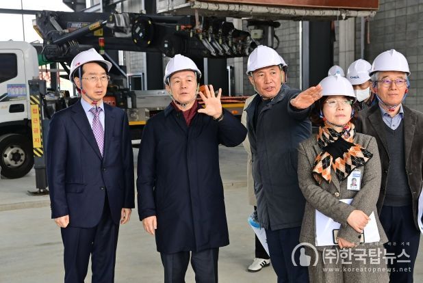 ㈜한국탑뉴스 차복원 기자 | 진주시는 조규일 진주시장과 김정환 경남테크노파크 원장이 지난 5일 이반성면 가산일반산업단지에 위치한 ‘미래항공기체(AAV) 실증센터’ 공사 현장을 방문해 공정 추진 현황과 안전관리 실태를 점검하고, 센터의 성공적 구축과 향후 협력 방안을 논의했다고 밝혔다.