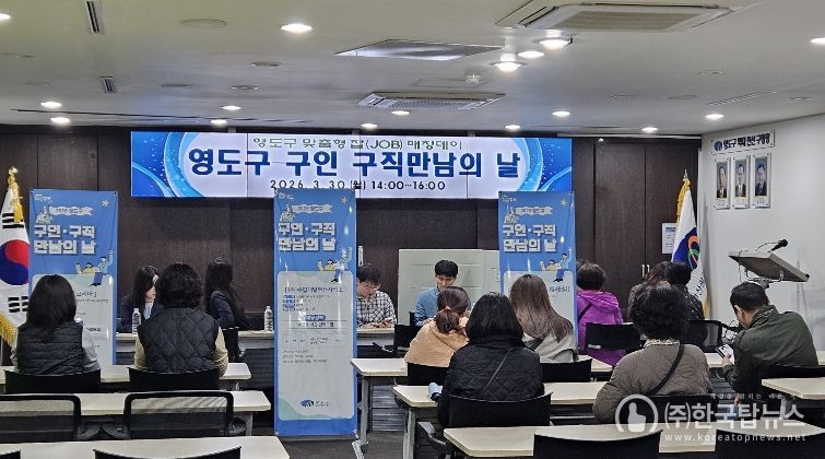 ㈜한국탑뉴스 송행임 기자 | 부산 영도구는 지난 3월 30일 영도구청 대회의실에서 지역 고용 활성화와 구인·구직난 해소를 위해 개최한 '구인·구직 만남의 날' 행사를 성황리에 마무리했다고 밝혔다.