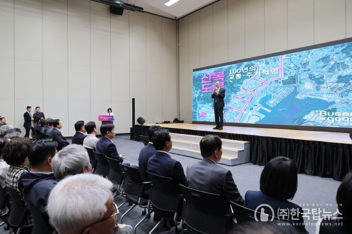 ㈜한국탑뉴스 차복원 기자 | 부산시는 2일 오후 1시 50분 부산항국제전시컨벤션센터에서 '산복도로, 100년의 교통·주거혁명 프로젝트' 정책 브리핑을 개최하여, 산복도로 일대 교통과 주거환경을 개선하고 원도심 재도약을 위한 미래 비전을 발표했다.