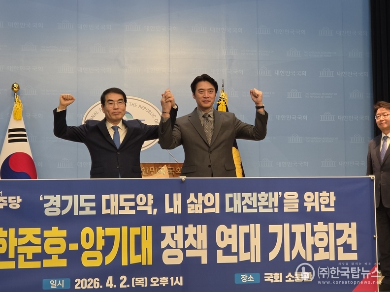 이번 연대는 한준호 후보의 역동적인 비전과 양기대 후보의 검증된 행정 경험을 결합해 도정의 실행력을 극대화하겠다는 취지다.