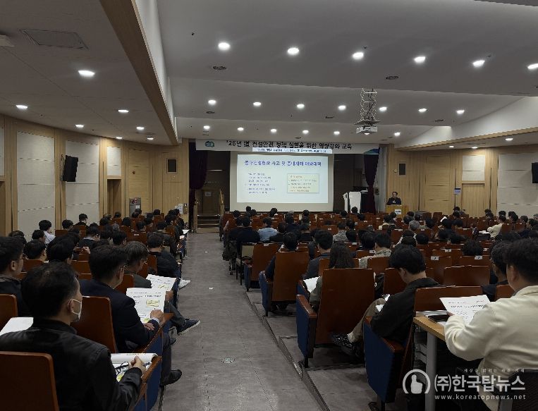 ㈜한국탑뉴스 송행임 기자 | 경기도는 도내 건설공사장의 안전 수준을 높이고 도, 시군 간 협력 강화를 위해 2일 인재개발원 다산홀에서 ‘건설안전 정책 실현을 위한 역량강화 교육’을 개최했다.