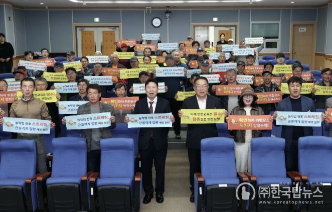 한편, 이날 행사에는 서태원 군수도 참석해 농민들과 함께 안전 실천을 다짐하고, “농업인들이 안심하고 생업에 종사할 수 있는 안전한 농업 환경 조성에 정책 역량을 집중하겠다”고 말했다.