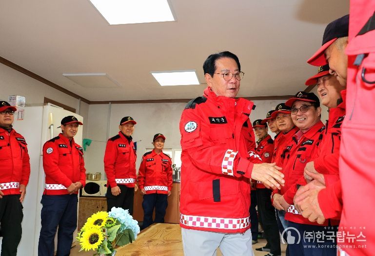 송 군수는 산림재난대응단의 근무 실태를 살피고 현장 요원들의 노고를 격려했다.