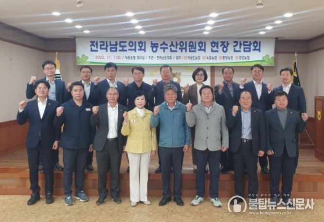 불탑뉴스 기자 | 전라남도의회 농수산위원회(위원장 신의준, 완도2)가 11월 7일 고흥 녹동농협에서 농업·농촌 발전방안을 모색하기 위한 ‘농정 간담회’를 개최했다고 밝혔다.