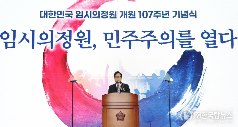 우원식 국회의장이 대한민국 임시의정원 개원 107주년을 맞아 헌정질서의 뿌리와 민주주의 정신 계승의 중요성을 강조했다.