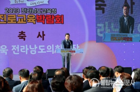 불탑뉴스 기자 | 전라남도의회 서동욱 의장은 지난 11월 8일 순천만생태문화교육원 야외무대에서 열린 2023 전라남도교육청 진로교육 박람회 개막식에 참석했다.