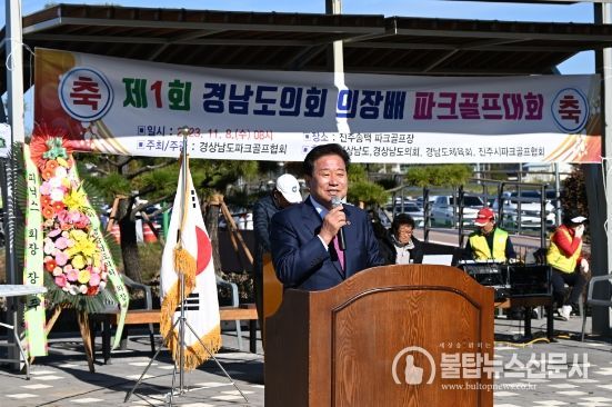 경남도의회 김진부 의장은 축사를 통해 “파크골프는 누구나 쉽게 배울수 있는 가족스포츠라는 장점 때문에 요즘 전국적으로 파크골프 열풍이 불고 있다 ”며 “도의회에서도 경남도민 누구나 쉽게 파크골프를 접하고 즐기수 있도록 부족한 파크골프장 확충 방안 마련에 최선을 다하겠다.”고 밝혔다.
