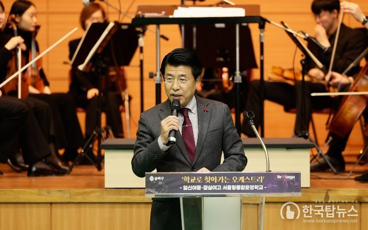 한국탑뉴스 송행임 기자 | 송파구가 기획하여 지난 10월 시작한 송파구립교향악단의 7개교 릴레이 공연, ‘학교로 찾아가는 오케스트라’가 지난 29일 일신여중·잠실여고 서울형통합운영학교 공연을 끝으로 성황리에 마무리됐다.