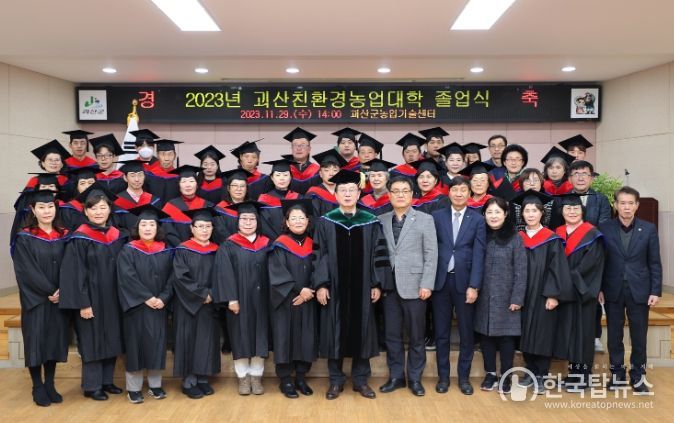 한국탑뉴스 송행임 기자 | 충북 괴산군은 지난 29일 농업기술센터 농심관에서 ‘2023년 괴산친환경농업대학’ 졸업식을 개최하며 올해 교육을 마무리했다.