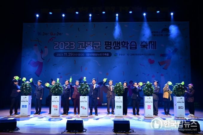 한국탑뉴스 송행임 기자 | 고령군은 한 해 동안 진행된 평생학습의 즐거움과 의미를 전달하고 성과를 공유하며 지속 가능한 학습문화공동체 조성을 위한 2023 고령군 평생학습축제를 11월 29일 대가야문화누리 우륵홀에서 개최 했다고 밝혔다.