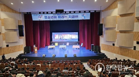 한국탑뉴스 송행임 기자 | 옥천군은 30일 옥천문화예술회관에서 관내 중학교 3학년 350여 명과 함께 토크콘서트 ‘청·바·지’를 개최했다.