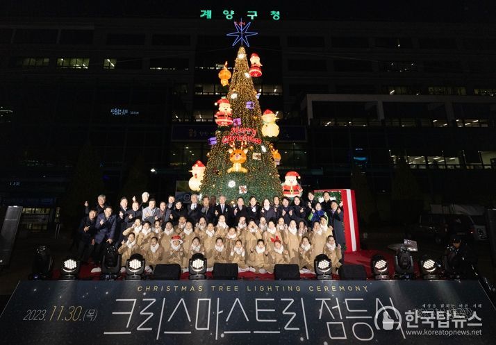 한국탑뉴스 송행임 기자 | 인천광역시 계양구가 구청 남측광장에 대형 크리스마스트리를 설치하고 30일 점등행사를 진행했다.