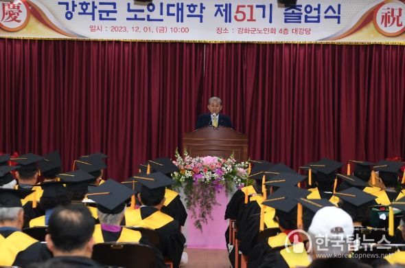 한국탑뉴스 송행임 기자 | 강화군은 지난 1일 (사)대한노인회강화군지회 주관으로 제51기 노인대학 졸업식을 개최했다고 밝혔다.
