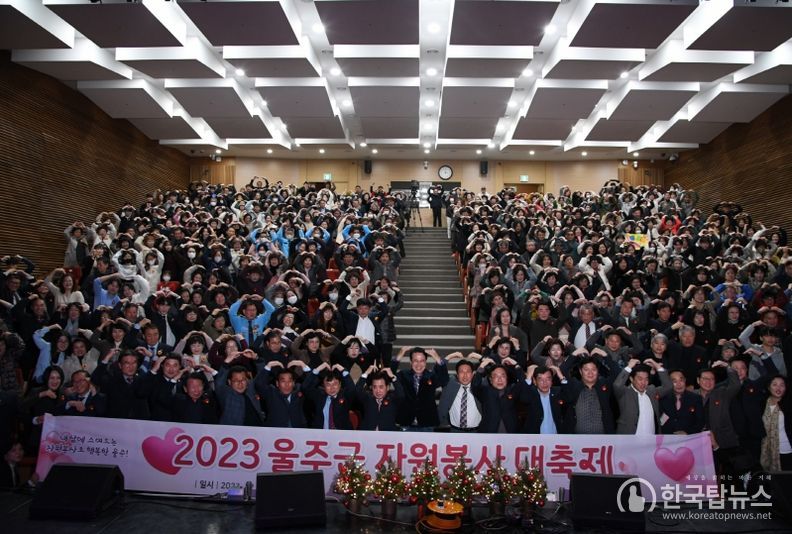 한국탑뉴스 송행임 기자 | (사)울주군자원봉사센터(이사장 손덕현)가 3일 군청 알프스홀에서 내빈 및 자원봉사자 500여명이 참석한 가운데 ‘2023년 울주군 자원봉사 대축제’를 개최했다.