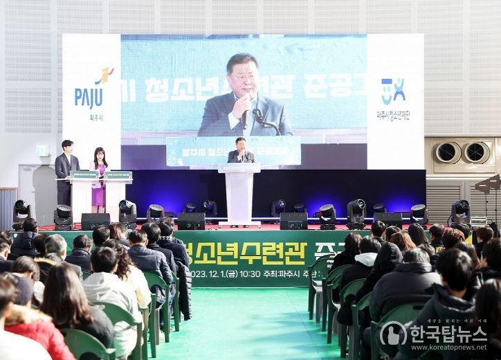 한국탑뉴스 송행임 기자 | 파주시는 12월 1일, 파주시 최초 '청소년수련관' 준공식을 개최했다. 이날 청소년과 지역주민 등 400여 명이 참석해 수련관 준공을 축하했다.