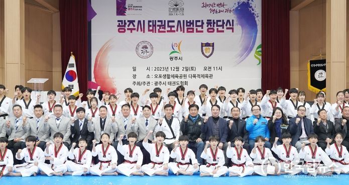 한국탑뉴스 송행임 기자 | 광주시 태권도협회는 지난 2일 태권도 저변 확대와 태권도 꿈나무 육성을 위한 태권도시범단 창단식을 오포생활체육공원 다목적체육관에서 개최했다.