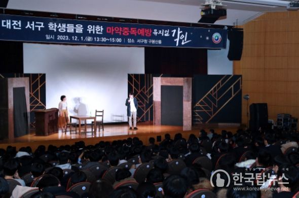 한국탑뉴스 송행임 기자 | 대전 서구는 11월 30일, 12월 1일 양일간 서구 학생들을 위한 마약 중독예방 뮤지컬 ‘각인’ 공연을 성황리에 마쳤다고 4일 밝혔다.