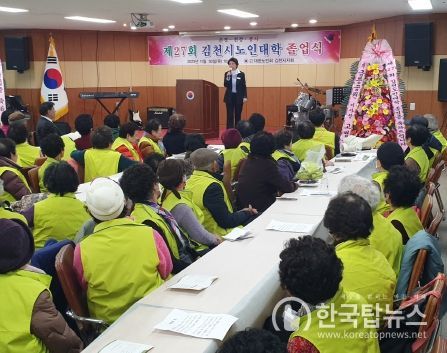 한국탑뉴스 송행임 기자 | 대한노인회 김천시지회는 지난 11월 30일 지회 2층 강당에서 제27회 김천시 노인대학 졸업식을 개최했다.