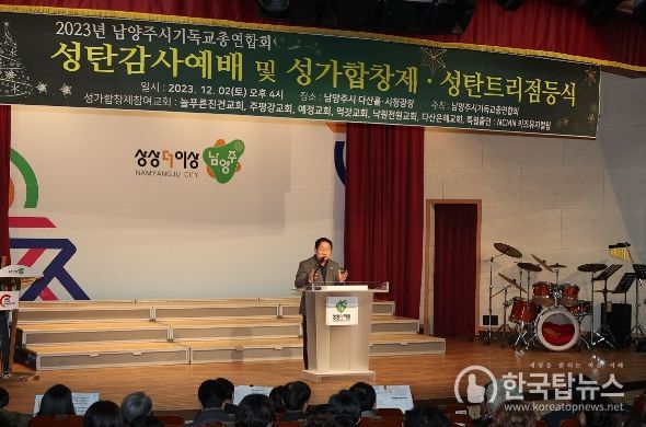 한국탑뉴스 송행임 기자 | 남양주시는 지난 2일 남양주시청 광장에서 남양주시기독교총연합회와 함께 연말을 맞아 ‘2023년 성탄 트리 점등식’을 개최했다고 4일 밝혔다.