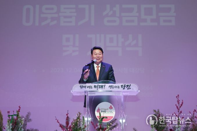 한국탑뉴스 송행임 기자 | 당진시는 4일 ‘희망 2024 나눔캠페인 이웃돕기 성금 모금 개막식’을 통해 성금 모금 시작을 알렸다. 2023. 12. 1.~2024. 1. 31.까지 진행되는 이번 이웃돕기 성금 모금은 공동모금회가 주관하고 당진시와 당진시 복지재단이 후원한다.