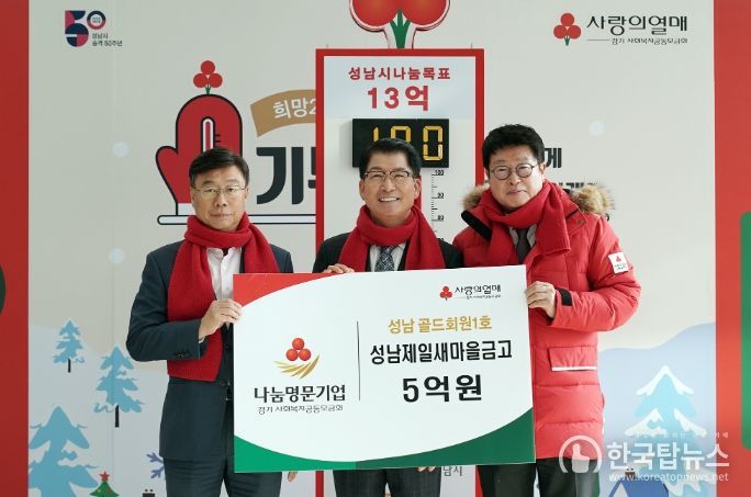 나눔명문기업은 고액 기부자(기업)들의 모임으로, 단대동 소재 MG성남제일새마을금고(이사장 김중옥)가 최근 3년간 5억원 이상을 기부해 경기사회복지공동모금회의 골드회원(1억원은 그린, 3억원은 실버)으로 이름을 올렸다.