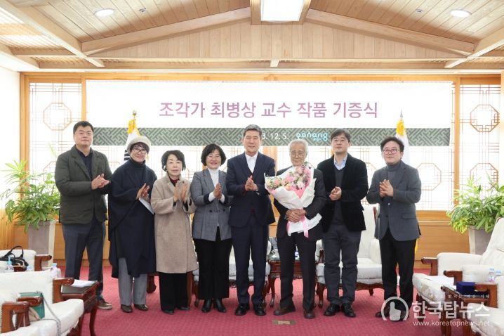 한국탑뉴스 송행임 기자 | 포항시는 5일 시청 대외협력실에서 ‘최병상 작가 작품 기증식’을 열었다. 이번 기증식은 지난 5월에 열린 포항시립미술관 스틸아트 작가 조망전 ‘기도하는 마음으로, 최병상’을 계기로 이뤄졌다.