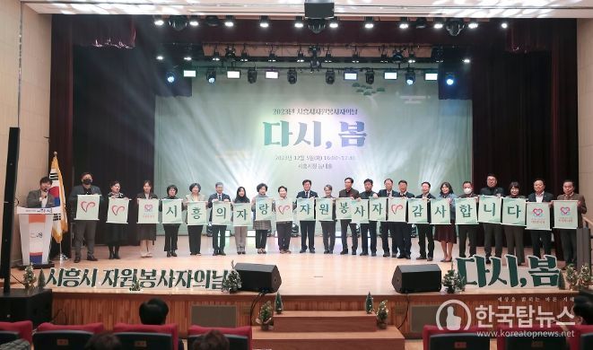 한국탑뉴스 송행임 기자 | 시흥시는 (사)시흥시자원봉사센터가 지난 5일 ‘자원봉사자의 날’을 맞아 시청 늠내홀에서 자원봉사자들을 격려하고 축하하는 자리인, 시흥시 자원봉사자의 날 ‘다시 봄’ 기념식을 개최했다고 밝혔다.