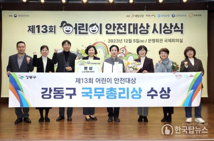 한국탑뉴스 송행임 기자 | 강동구가 행정안전부 주관 ‘제13회 어린이 안전대상’에서 국무총리상을 수상했다. 시상식은 12월 5일 서울 은행회관 국제회의실에서 열렸다.