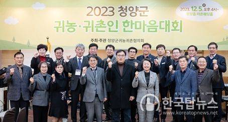 한국탑뉴스 송행임 기자 | 청양군농업기술센터와 청양군 귀농귀촌협의회가 지난 5일 청양읍 소재 라온웨딩홀에서 2023 귀농귀촌인 한마음대회를 열었다.