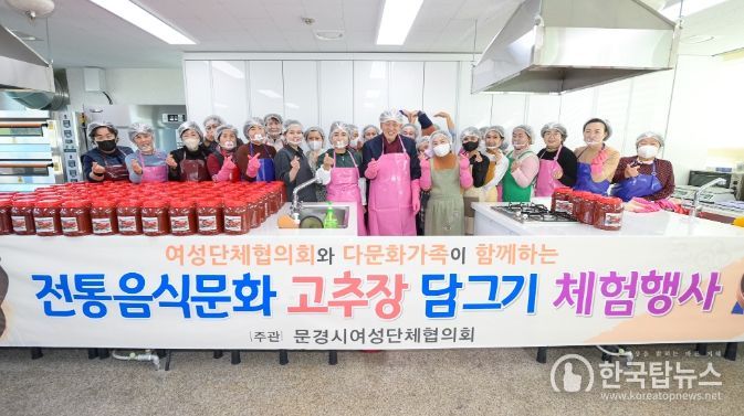 한국탑뉴스 송행임 기자 | 문경시 여성단체협의회는 12월 5일 여성회관에서 결혼이주여성 20여 명과 함께 고추장 담그기 체험행사를 진행했다.