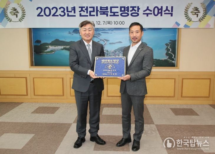 도는 7일 도청 회의실에서 전라북도명장 수여식을 갖고 김관영 도지사가 진정욱씨에게 직접 명장 증서와 명패를 전달하며 그동안 숙련기술 발전을 위해 흘린 땀과 노고를 치하했다.