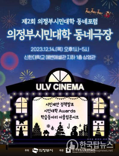 한국탑뉴스 송행임 기자 | (재)의정부시평생학습원은 오는 12월 14일 오후 1시부터 신한대학교 에벤에셀관에서‘제2회 의정부시민대학 동네포럼’을 개최한다고 밝혔다.