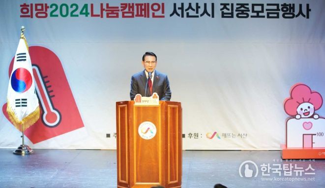 한국탑뉴스 송행임 기자 | 충남 서산시는 연말연시를 맞아 7일 서산시 문화회관 소공연장에서 ‘희망2024 나눔캠페인 집중모금 행사’를 개최했다.