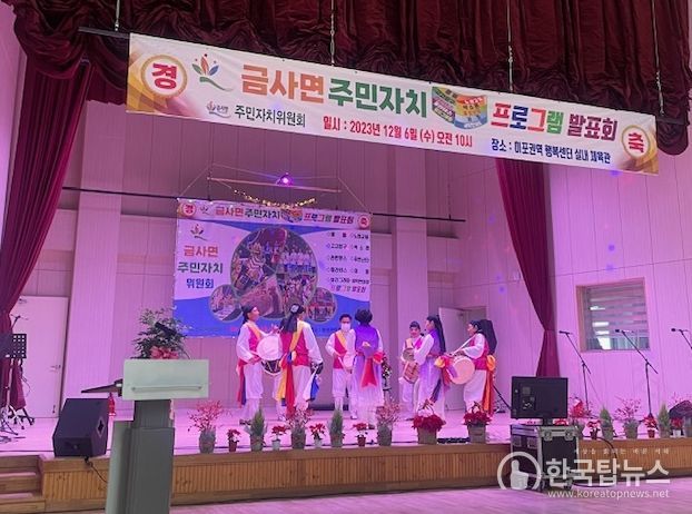 윤태록 위원장은 “오늘 발표회는 코로나19로 인해 4년 만에 개최되어 더욱 의미 있고 뜻깊은 행사라고 생각하며, 지난 9개월 동안 금사면 주민자치센터 수강생분들이 구슬땀을 흘리며 열심히 갈고 닦은 실력을 마음껏 뽐낼 수 있는 기회를 갖게 되어 기쁘다.”라고 말했다.