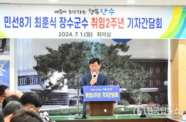 한국탑뉴스 한기석 기자 | 민선8기 2주년을 맞아 최훈식 장수군수는 1일 군청 회의실에서 기자간담회를 개최해 주요 성과를 설명하고, 후반기 역점 전략을 제시했다.