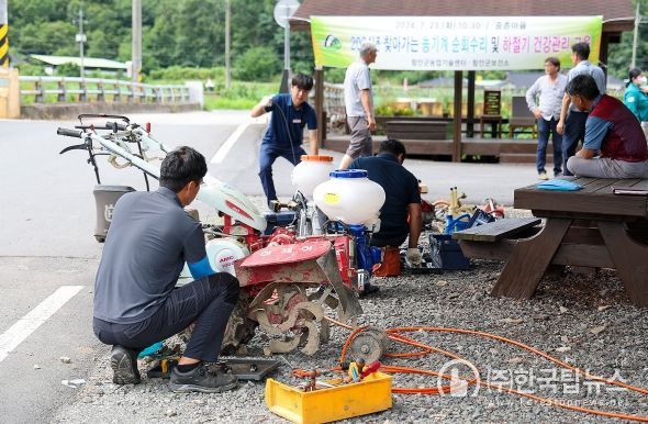㈜한국탑뉴스 송행임 기자 | 함안군은 23일 군 농업기센터 농기계 순회수리반과 함안보건소와 합동으로 산인면 중촌 마을회관에서 ‘2024년 찾아가는 농기계 순회수리 및 하절기 건강관리 교육’을 실시했다.
