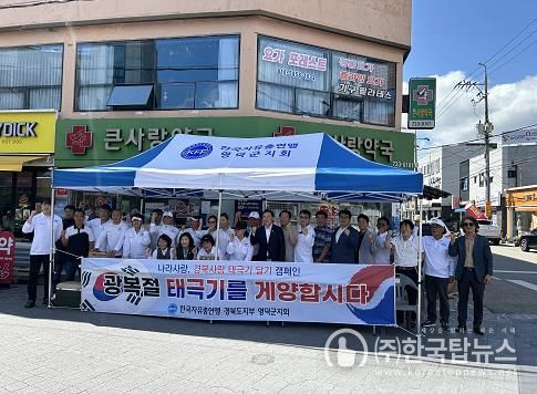 ㈜한국탑뉴스 송행임 기자 | 한국자유총연맹 영덕군지회는 제79주년 광복절을 맞아 지난 14일 영덕읍 큰사랑약국 앞에서 태극기 나눔 행사를 펼쳤다.