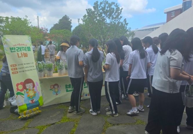 ㈜한국탑뉴스 차복원 기자 | 제주시는 15일 신성여자고등학교에서 학생과 교직원 150여 명을 대상으로 ‘반려식물 나눔행사’를 개최했다.